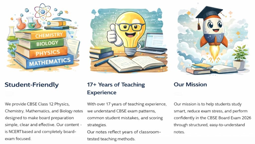 Our mission is to help CBSE Class 12 students prepare smartly, reduce exam stress, and achieve better results through well-structured, exam-ready notes.