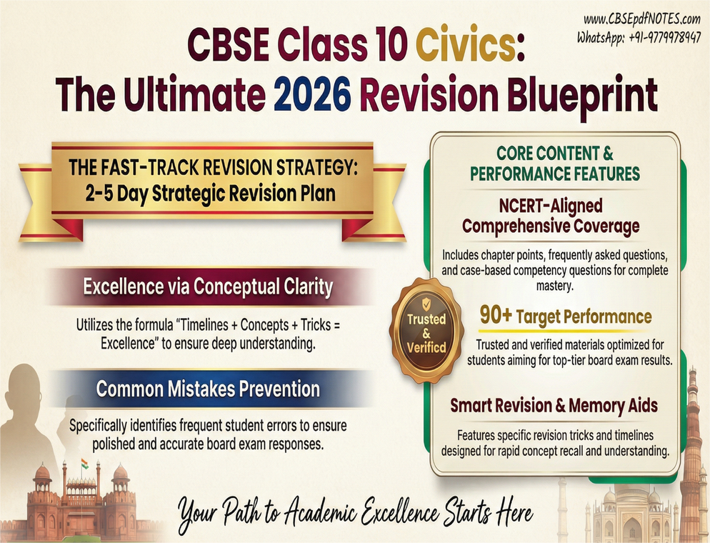 The CBSE Class 10 Civics PDF Notes available on cbsepdfnotes.com are prepared strictly according to the latest syllabus prescribed by CBSE.
